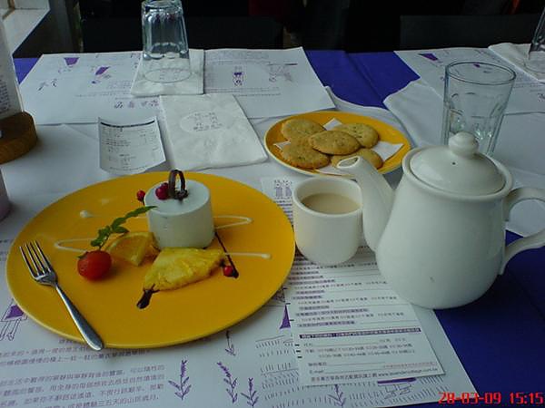 今天替胃點了熱的薰衣草奶茶、香草餅乾、及薰衣草慕司來坐枱。
