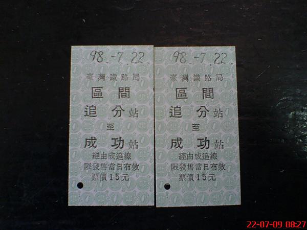 來追分車站當然要買「追分成功」的車票啦(這個是FOR考試用的)