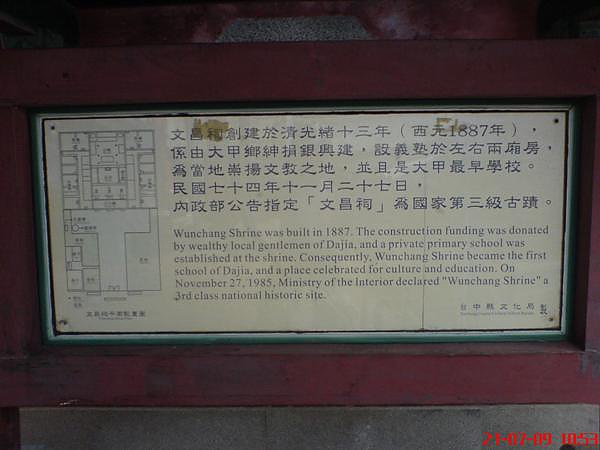 大甲的文昌祠建於清光緒十三年(西元1887年),距今已經122年了!