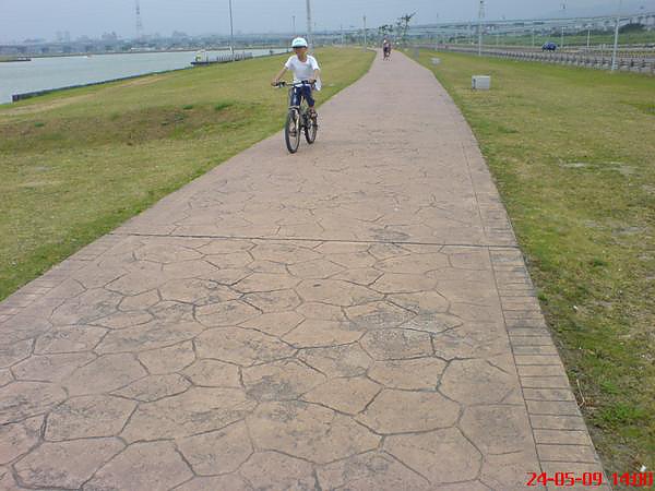 二重疏洪道旁的車道看起來是用紅色石塊拼貼而成