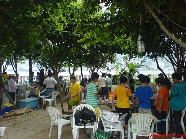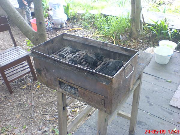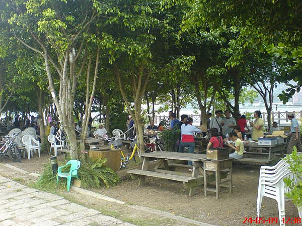 沿著" " 型石板路左轉後在右手邊就會看到在樹蔭下的烤肉區(粉多人肉很香)