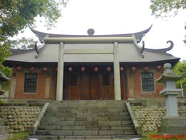 叫「神社」卻配上中華民國國徽,一整個不搭,也讓前面的鳥居顯得一整個突兀。
